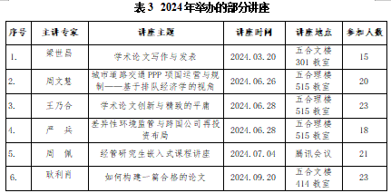 科研团队与企业、高校等实际应用领域保持良好的合作关系,教师积极开展产学研合作,深入了解实际问题和需求,将研究成果应用到实践中,地方社会经济发展提供了智力支撑。2024年MIB专业导师共承担国家级、省部级科研项目和横向项目分别为:国家级课题2项,省部级课题11项,专著2部,研究报告1项,科研经费达72万元。本年度MIB专业老师先后发表的论文有17篇。我院主办的学术论坛邀请了国内相关领域的专家、学者开展专题报告,我院教师及全体硕士研究参加了学术论坛。本年度主办了7场学术讲座、研讨会、培训班,邀请了梁世昌、周文慧、王乃合、严兵等一批知名学者开展学术讲座。(见表3)。全力支持本学科教师参加区内外学术会议,所有教师都参加了全国性或区域性不同层次的学术会议和研修班培训。成功举办“民族地区公共治理高质量发展”学术研讨会。