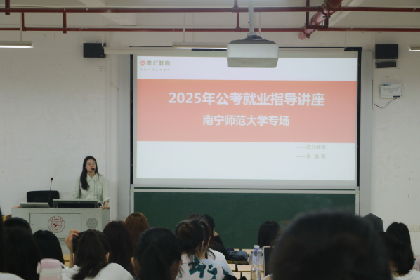 为了帮助大学生进一步了解公职考试相关知识,提高大学生备考效率,必威西汉姆联官网于3月26日下午在五合校区文理综合楼文楼举办了公职考试就业指导讲座。由志公教育南宁高校中心讲师朱凯莉主讲,吸引了众多学生参与,现场气氛热烈。