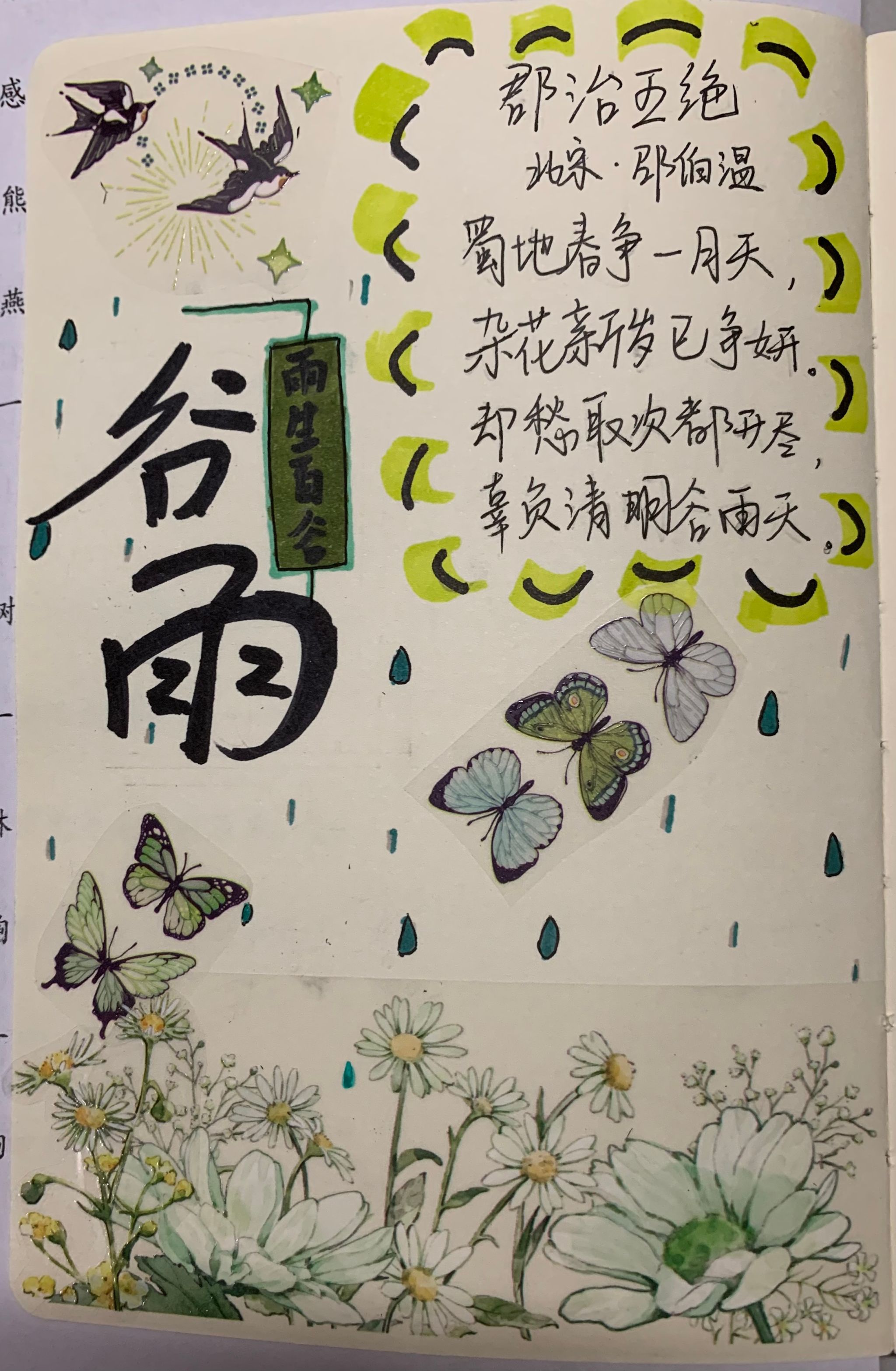 本次活动不仅结合了传统文化与现代创意,通过手账的艺术创作,让大家深刻感受谷雨时节的独特魅力,同时也进一步展现了个人的创造力、艺术才华以及对传统文化的热爱。