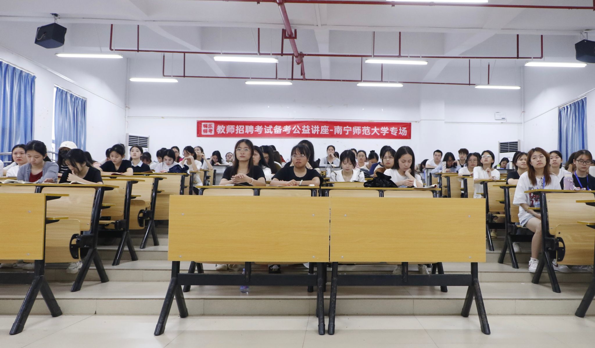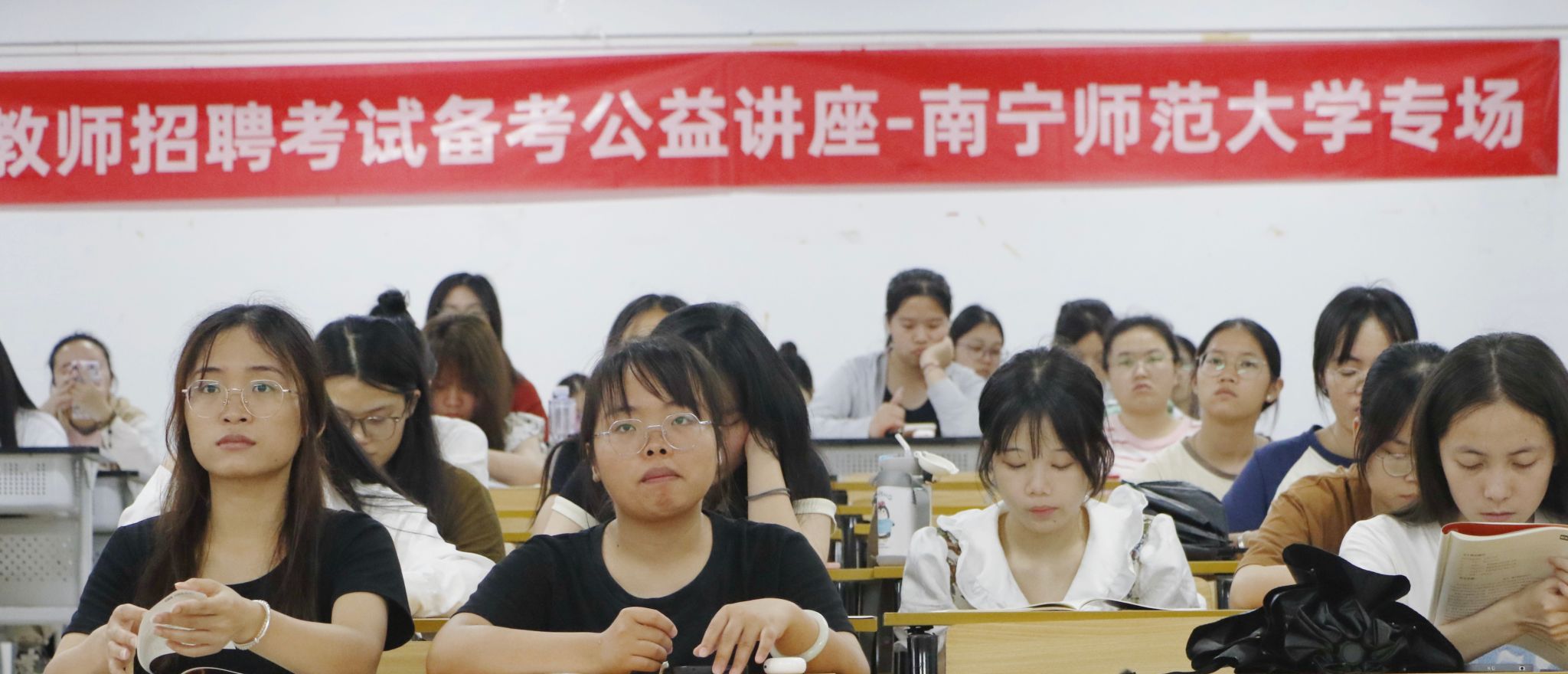 会上,主讲人赵凤霞教师分析了2023年应届生毕业去向情况,让学生们深入了解了应届毕业生的就业规划。她深入讲解了特岗教师考情情况,着重分析了不同种类的考情和题型,重点讲解了桂林两学笔试考情,帮助学生们了解了特岗教师的不同考情情况,制定了不同的报考方案。最后,她又展示了快速提分模板,详细介绍了教师的职业道德等内容。