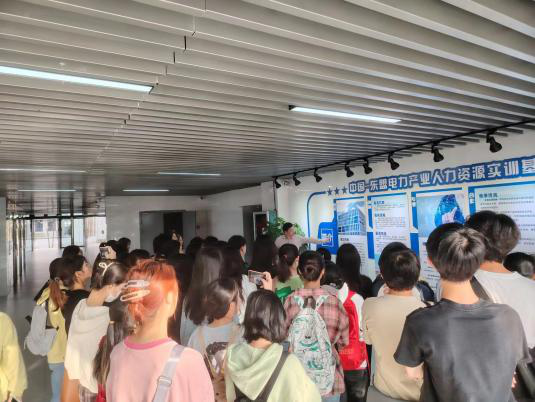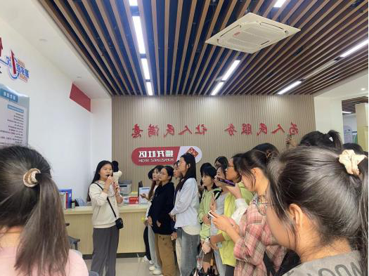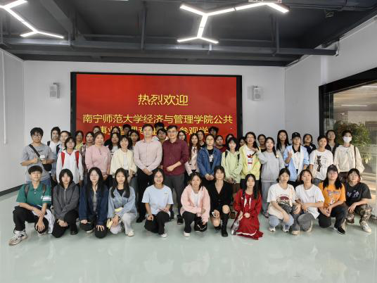 随后,来到第二站——南宁-东盟电力产业人力资源实训基地。老师和同学们受到了基地负责人、我院05级校友徐庆经理的热情接待。他带领大家深入了解了基地的发展历史和企业文化,并参观了培训室、机房等区域。通过这次参观交流,同学们不仅对人力资源的分配与管理有了更清晰的认识,还对电力产业人力资源的未来发展前景有了更深入的了解。活动最后,徐庆经理表达了对同学们的期望,鼓励大家勇敢面对未来的挑战,努力成长为社会所需的人才。