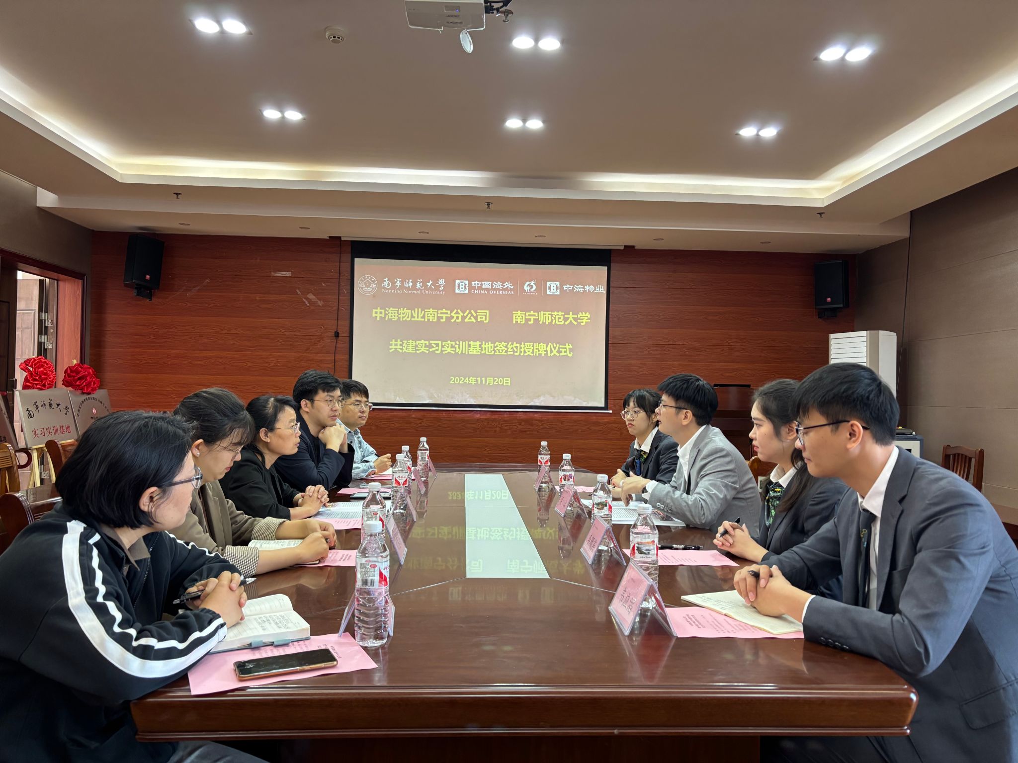 2024年11月20日,必威西汉姆联官网与中海物业南宁分公司在五合校区理综515举办校企战略合作签约授牌仪式。中海物业南宁分公司人事行政部经理梁浩一行,必威西汉姆联官网(主持行政工作)副院长何玲玲,党委副书记、纪委书记何一飞,团委书记刘家瑶出席仪式。会上,学院(主持行政工作)副院长何玲玲介绍了学院的专业设置、培养模式及毕业生的就业方向,希望双方共同推动人才培养与产学研建设的深入合作。中海物业南宁分公司人事行政部经理梁浩介绍了公司的发展脉络、人才培养理念、校企合作经验等内容,表达了与学院加强合作的愿望。他指出,非常欢迎和邀请学院毕业生到中海物业工作,实现自身的职业梦想。