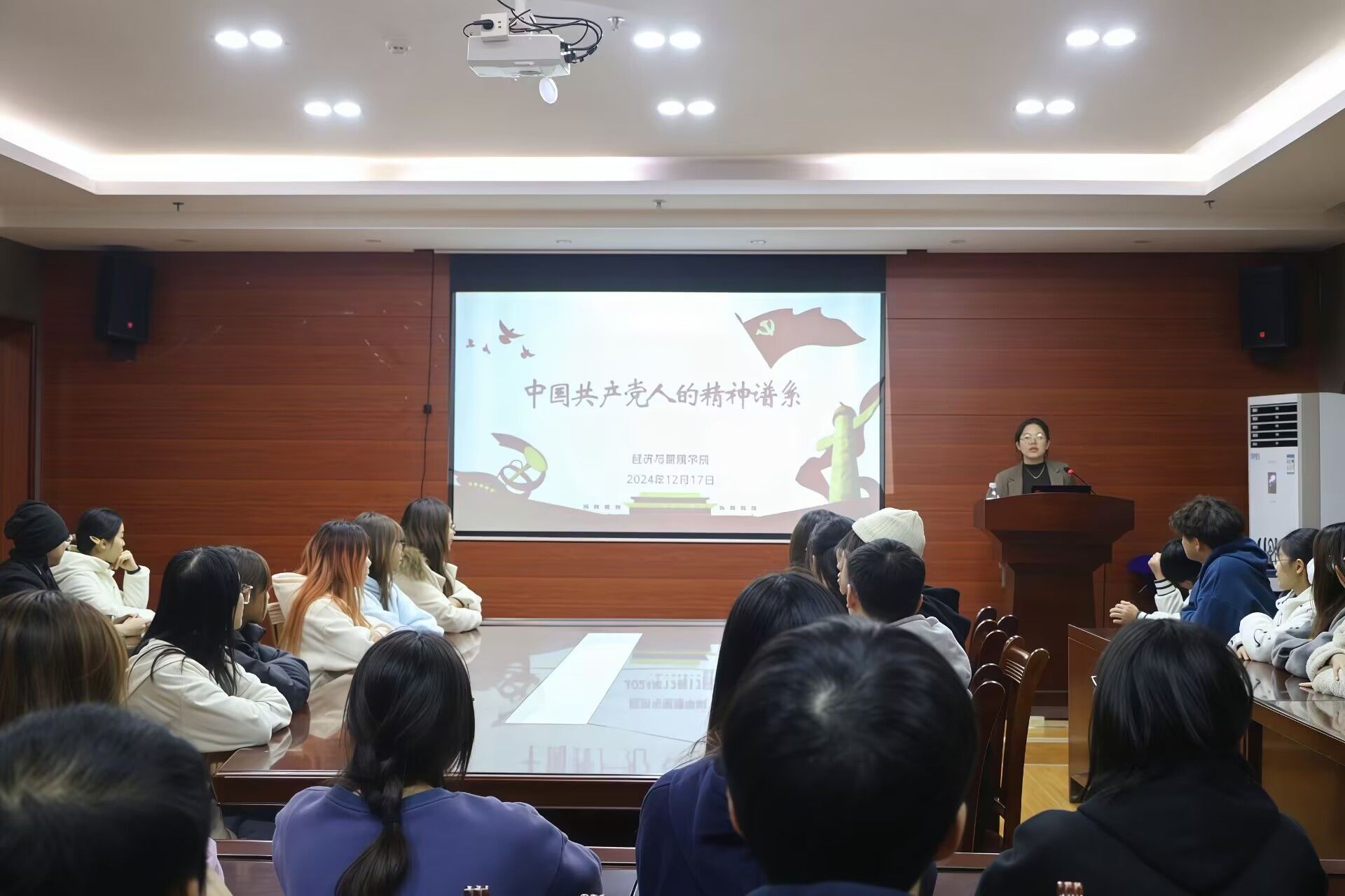 党课开始之前,刘家瑶老师通过精彩的视频带领大家了解中国共产党在发展历程中形成的系列重要精神。她首先介绍了“中国共产党人精神谱系”的丰富内涵,并强调中国共产党人的精神谱系是一个完整的体系,具有坚实的实践基础和厚重的理论根基,坚定的理想信念是中国共产党人精神谱系的灵魂。接着,她从中国共产党百年发展历程中的四个阶段详细阐述了中国共产党人精神谱系的内容特点,使学生对党的历史和精神有了更深刻的理解。最后她号召大家,青年践行使命担当需要强大精神力量,青年应从中国共产党人精神谱系中汲取历史智慧和前行动力,在弘扬中国共产党人精神谱系中更好地践行使命担当。同学们纷纷表示,本次宣讲活动主题鲜明、脉络清晰、内涵丰富,具有一定的指导性和启发性,是一堂生动的思政课。