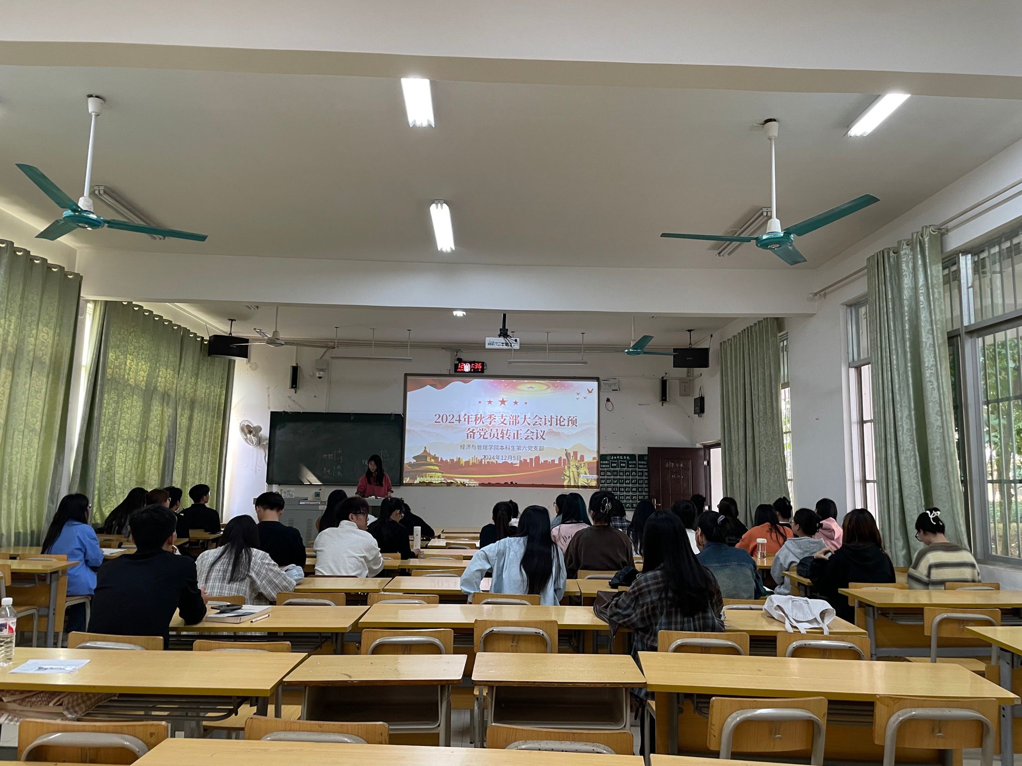 2024年12月5日,必威西汉姆联官网本科生第六党支部在五综109教室召开秋季支部大会讨论预备党员转正会议。会议由支部副书记周琴主持,本科生第六党支部全体党员参加大会,会议主要讨论预备党员唐鑫兰等两位同志转为正式党员问题。