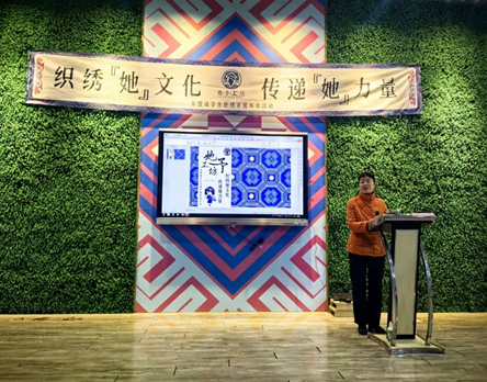 活动伊始,何玲玲教授就本次研学活动作了致辞。随后,蓝淋老师以课程讲座和实物展示的形式介绍壮绣的历史起源,讲述其在壮族人民生活、节庆中的意义,经典图案背后的传说故事。紧接着,由蓝茜老师介绍了中国的“四大名绣”的文化内涵和不同特色,指出壮绣与其他类型刺绣的异同点,并展示了壮美坊最新设计的壮绣文创产品。