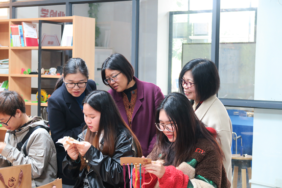 最后,在两位研学导师的指导下,东盟留学生及文管系学生开展壮绣体验活动。初时的生疏在摸索和指导中转化为熟练,参与者们相互交流、互帮互助,不同的文化背景因壮绣相聚,以巧手传承非遗,用一颗颗炙热的心传递温暖坚韧的“她”力量。