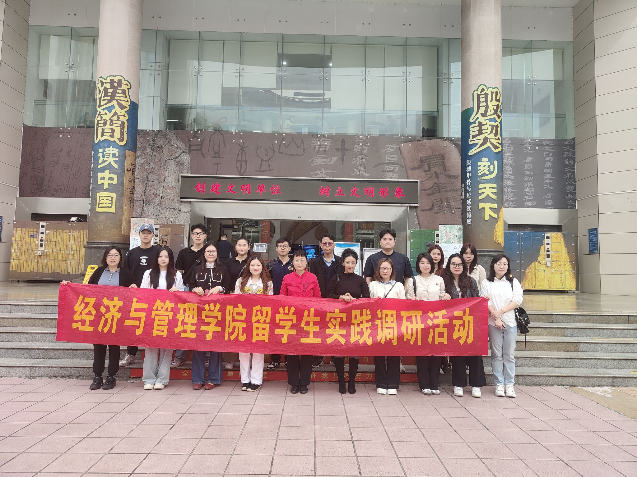 3月14日上午,必威西汉姆联官网全体留学生在何玲玲副院长(主持行政工作)、系主任陈柳源老师、程潇凝老师、孙国时老师的带领下,赴广西壮族自治区图书馆开展实践调研活动。此次活动以甲骨文探源、新华社摄影展参观及全民阅读日讲座为主线,通过多元互动形式深化留学生对中华文化的理解,促进跨文明对话。