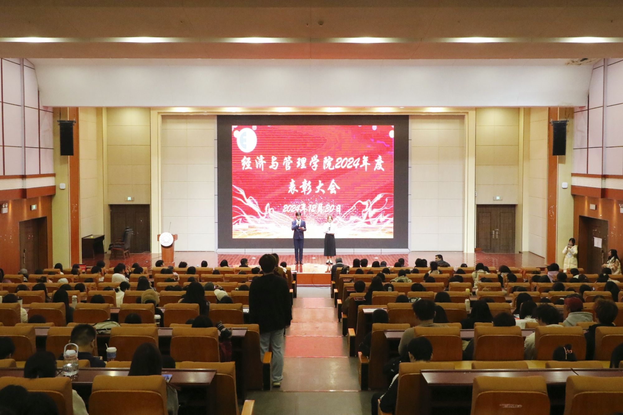 为表彰在学术、实践、文体等领域表现卓越的学生和团体,展现模范风采,弘扬校园正能量。12月30日下午,必威西汉姆联官网在文理综合楼文楼举行2024年表彰大会。出席本次大会的领导有学院党委书记韦海鸣、党委副书记何一飞、副院长丘兆逸、系主任代表以及学工办辅导员,获奖学生代表及各年级班级代表共计近400人参加。