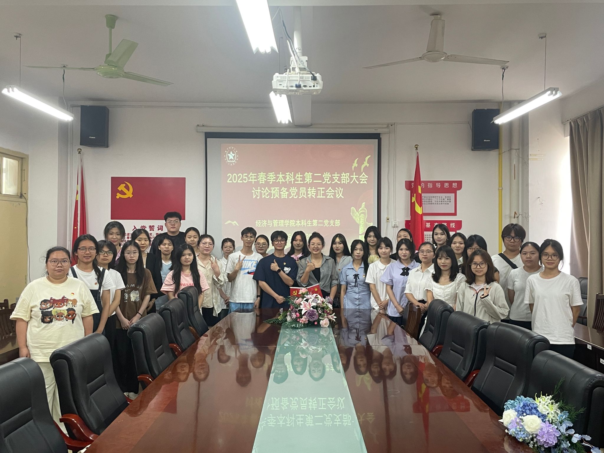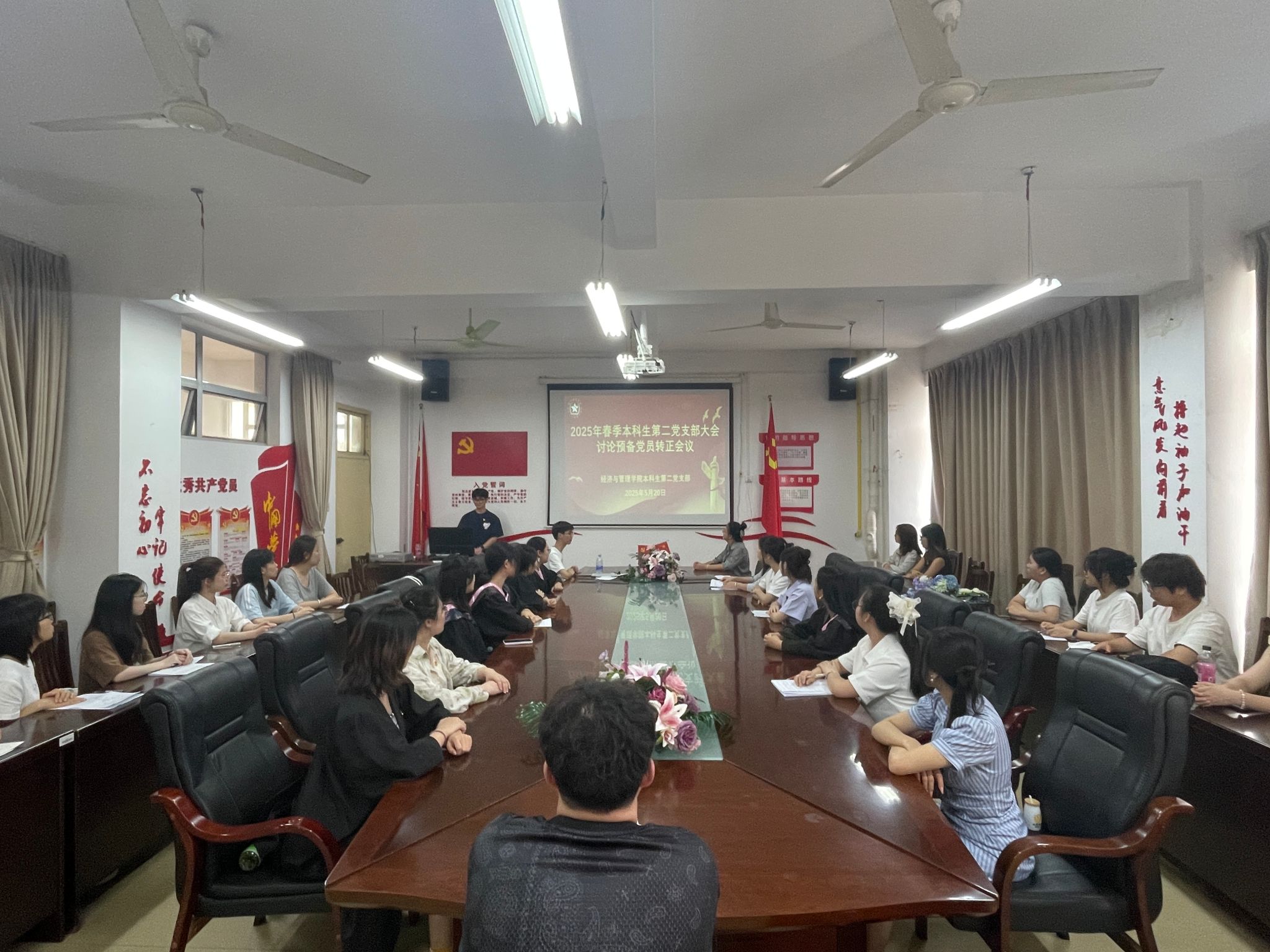 5月20日下午,必威西汉姆联官网本科生第二党支部于明秀校区文星楼召开预备党员转正大会,讨论樊鹏举同志的转正事宜,会议由支部副书记黄耀杉主持。