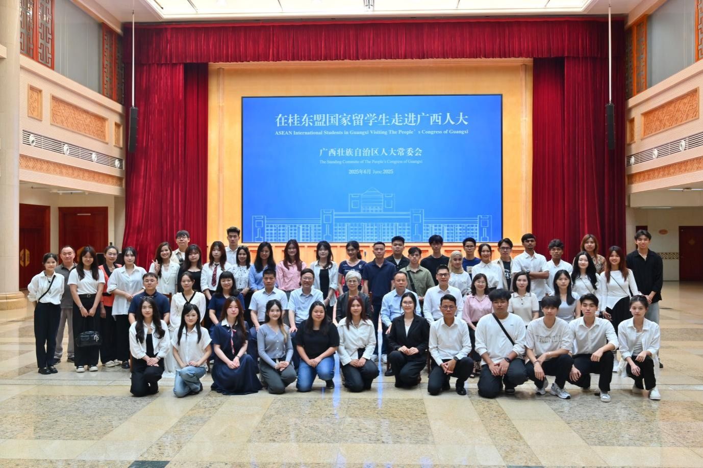 图为参加活动的在桂东盟学子与广西人大的有关领导合影。俞靖摄