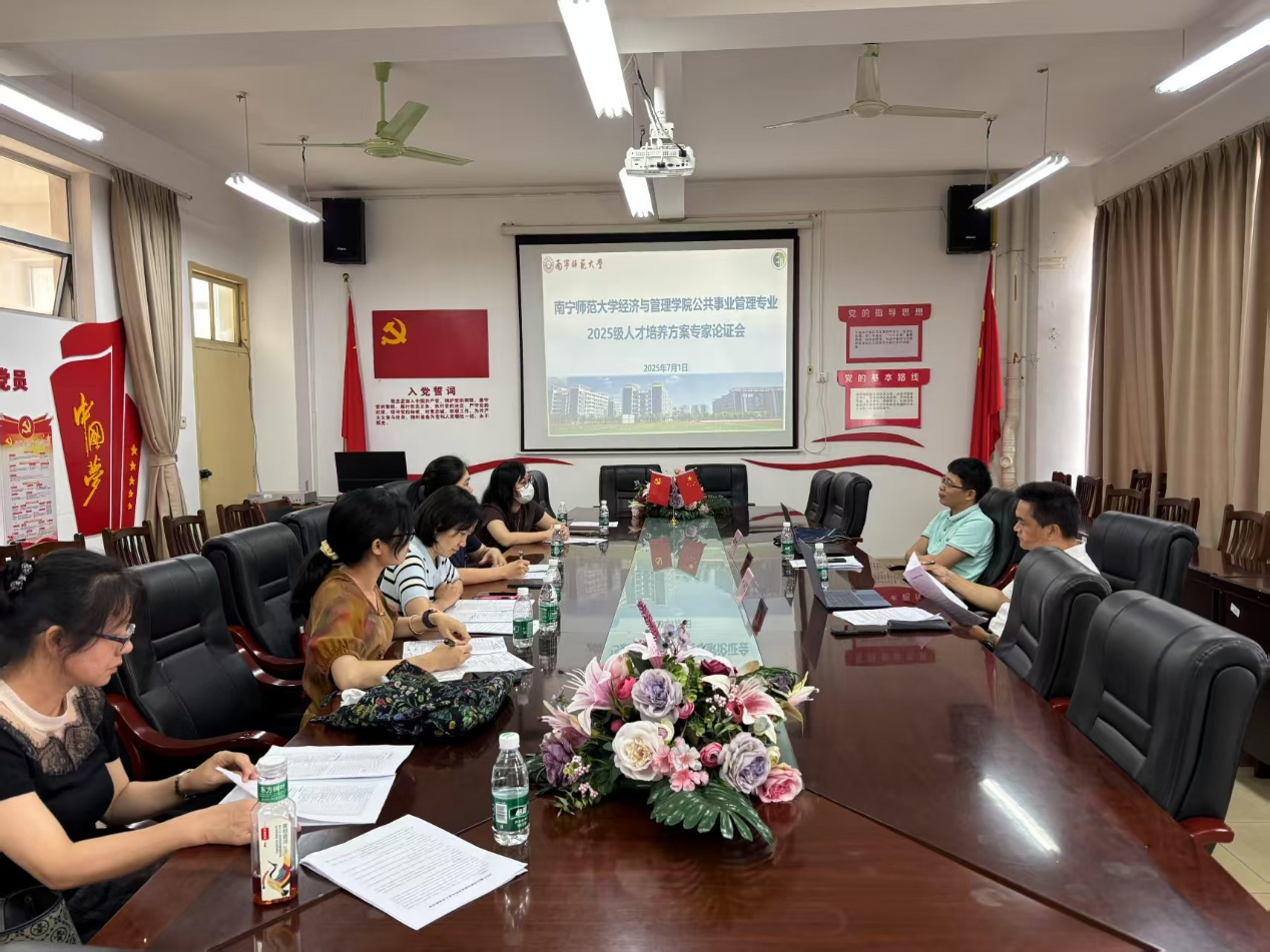 2025年7月1日上午9时,南宁师范大学必威西汉姆联官网2025级公共事业管理专业本科人才培养方案专家论证会在明秀校区文星楼707会议室顺利举行。本次会议特邀广西大学公共管理学院覃志敏副院长、广西民族大学政治与公共管理学院博士生导师叶兴艺教授担任论证专家,必威西汉姆联官网公共管理系主任陈柳源,韦立立副教授,钟小霞博士、程潇凝博士、宁静老师和黄丽娅老师等公共管理系教师出席会议。