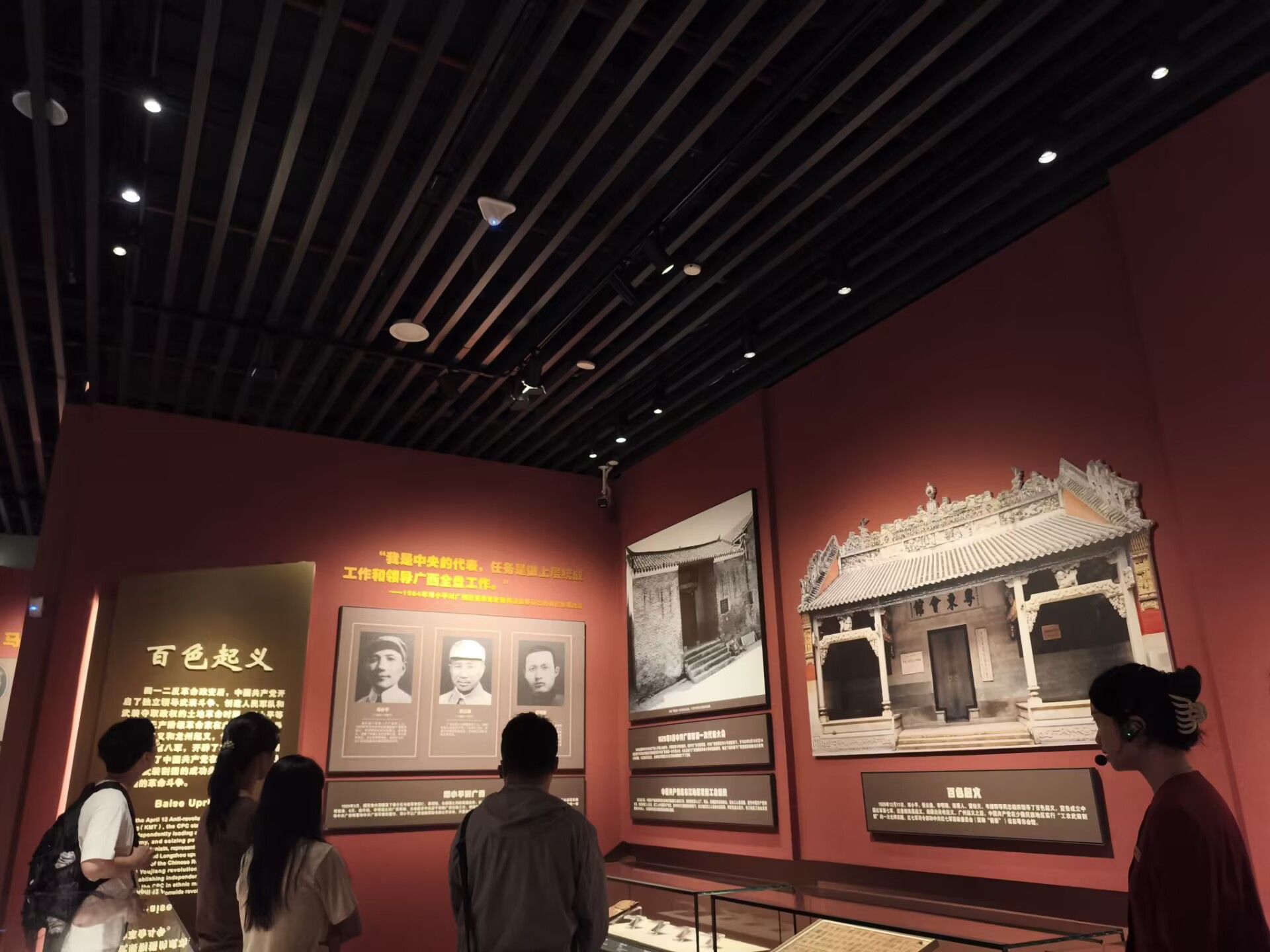 7月15日上午,实践团队前往广西壮族自治区博物馆,集体参观了“烽火南疆——广西近现代革命史陈列”展厅。展览以时间为线索,通过丰富的文物、图片和多媒体技术,全面展现了广西人民在近现代革命斗争中的英勇事迹和光辉历程。从太平天国运动到百色起义,从抗日战争到解放战争,广西儿女为民族独立和人民解放作出了不可磨灭的贡献。参观过程中,实践团成员认真聆听讲解,不时驻足观看,通过一件件实物、一段段故事,深刻感悟革命先辈坚定的理想信念和不怕牺牲的斗争精神。