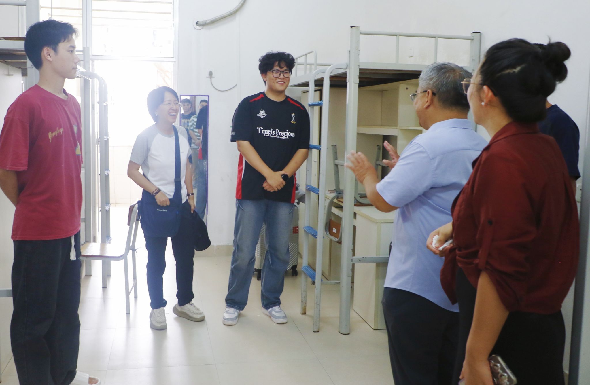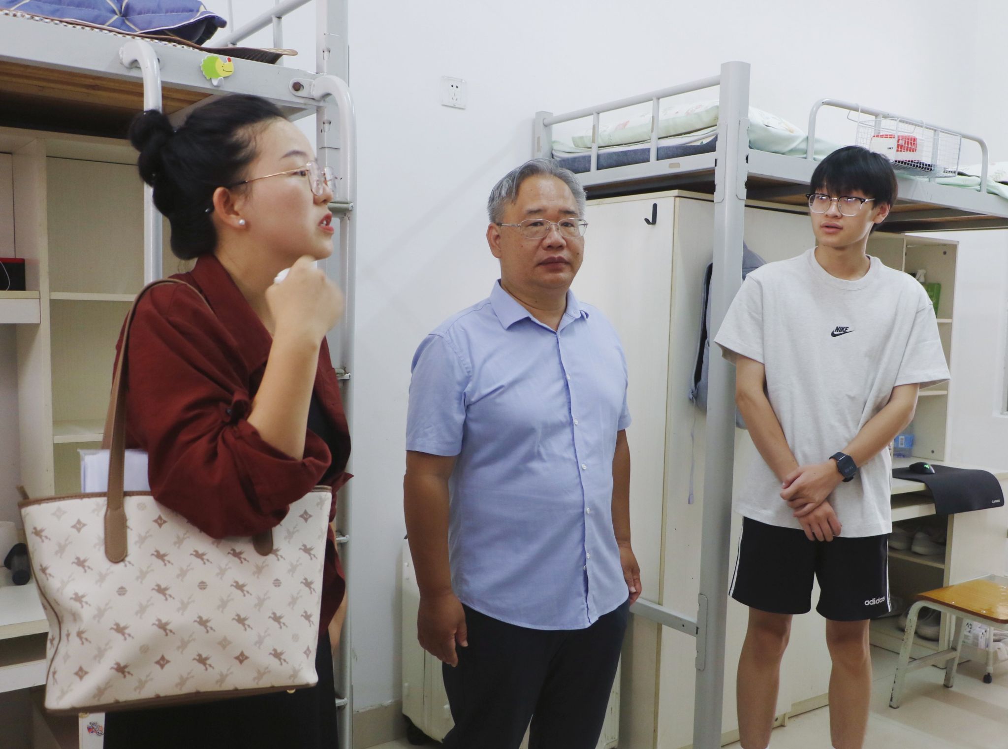 新生报到期间,学院党委书记韦海鸣、院长何玲玲、党委副书记谢统义、副院长丘兆逸,全体辅导员以及班主任来到学院大本营指导学生干部做好新生接待工作,学生干部从容有序进行双证核验、发放资料等工作。当天下午,学院领导和班主任、辅导员深入新生宿舍,与新同学及家长亲切交流,送上学校的关怀与问候。此外,为解决新生初到学校面临的各种问题,学院开设了新生报到直播答疑通道,全天不间断直播,吸引观众2057人次观看,评论量243,点赞达2.3万,及时有效地解决了新生困惑。晚上,班主任召开新生见面会,重点强调了预防电信诈骗等内容,为新生开学上好第一堂思政课。