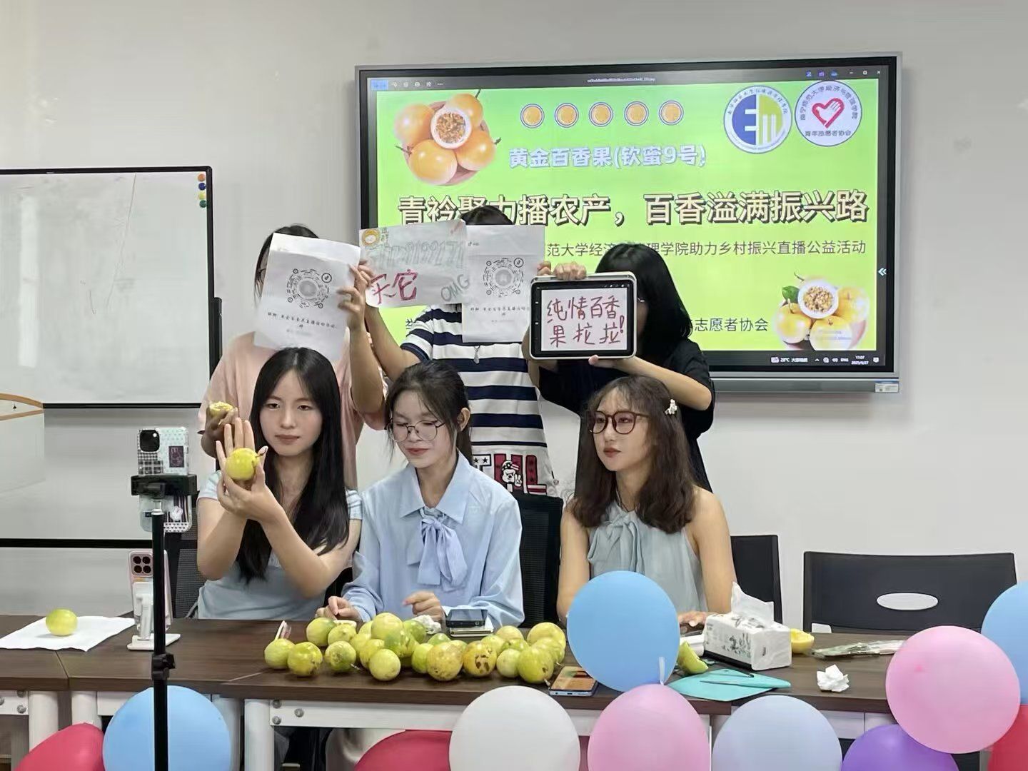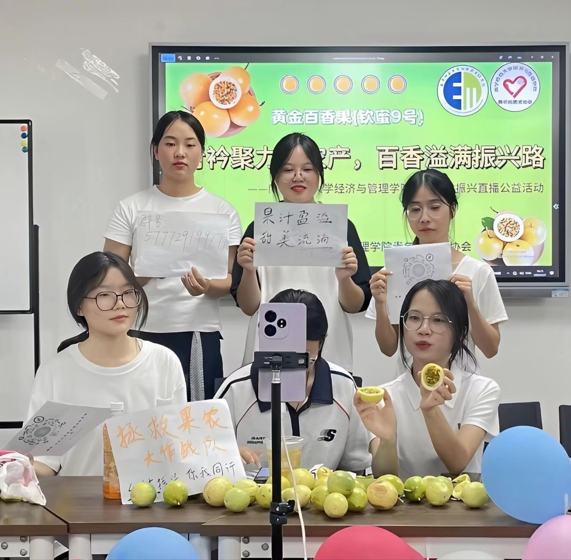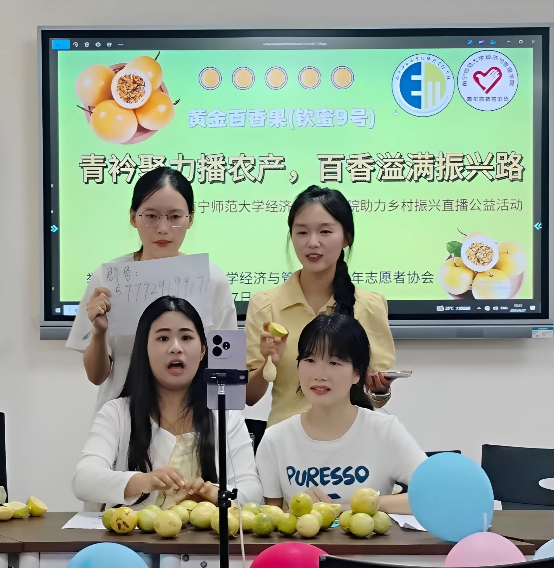 为积极响应国家乡村振兴战略,拓宽农产品销路,带动农户增收,南宁师范大学必威西汉姆联官网青年志愿者协会于2025年9月27日开展以“青衿聚力播农产,百香溢满振兴路”为主题的百香果直播助农大赛。