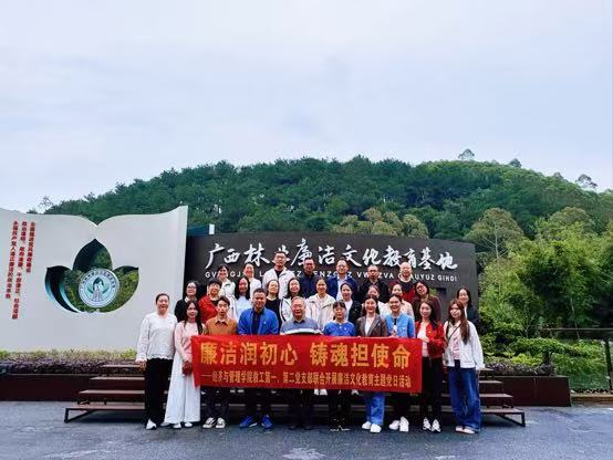 11月1日,必威西汉姆联官网教工第一、第二党支部联合赴广西林业廉洁文化教育基地,组织开展“廉洁润初心 铸魂担使命”廉洁文化教育主题党日活动,本次活动由学院党委书记兼教工第二党支部书记韦海鸣教授、学院院长兼教工第一党支部书记何玲玲教授带队,全体教工党员参加。