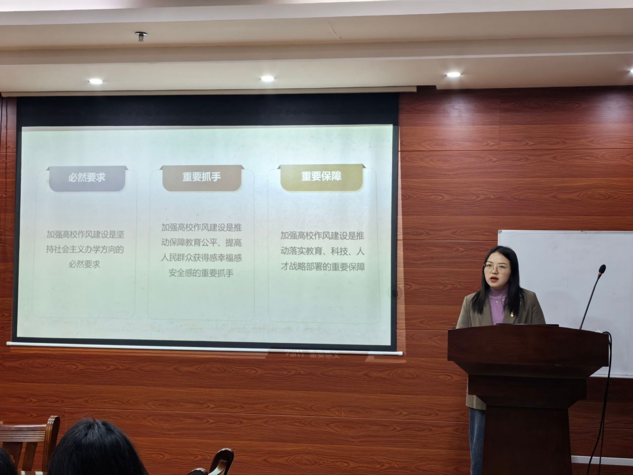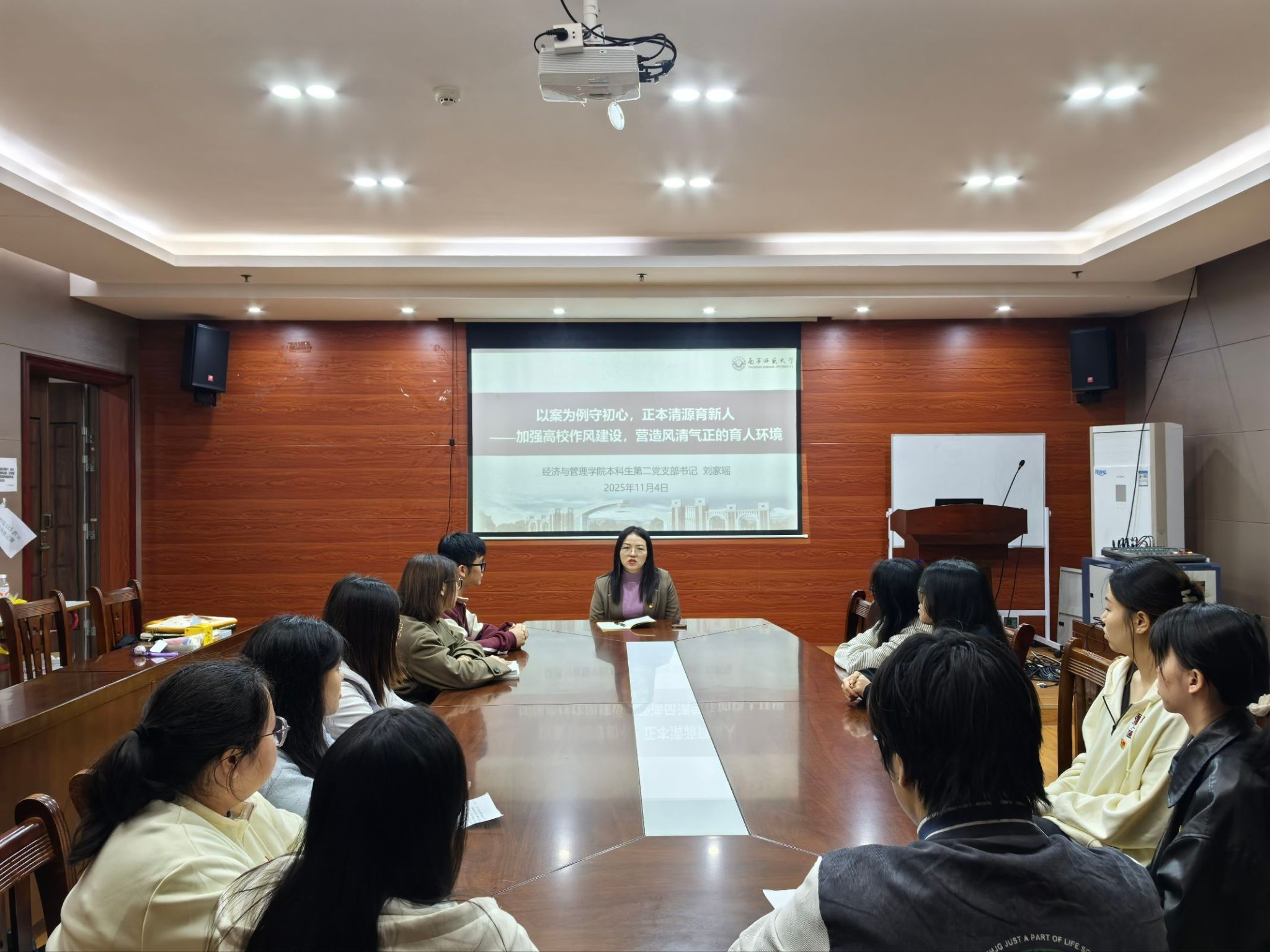 会上,支部书记刘家瑶围绕高校作风建设这一重要主题开展警示教育,结合典型案例引导党员以案例为镜鉴。她着重强调,全体党员务必以案明纪、防微杜渐,将纪律意识深度融入日常学习与实践当中。在查摆问题与批评反思环节,全体党员紧密围绕警示教育内容,对照六个方面突出问题,结合自身在政治信仰、理论学习、纪律作风等方面的实际表现,深入开展自我剖析。支部委员同步梳理支部层面存在的问题,并就党员提出的意见建议进行现场回应与说明。