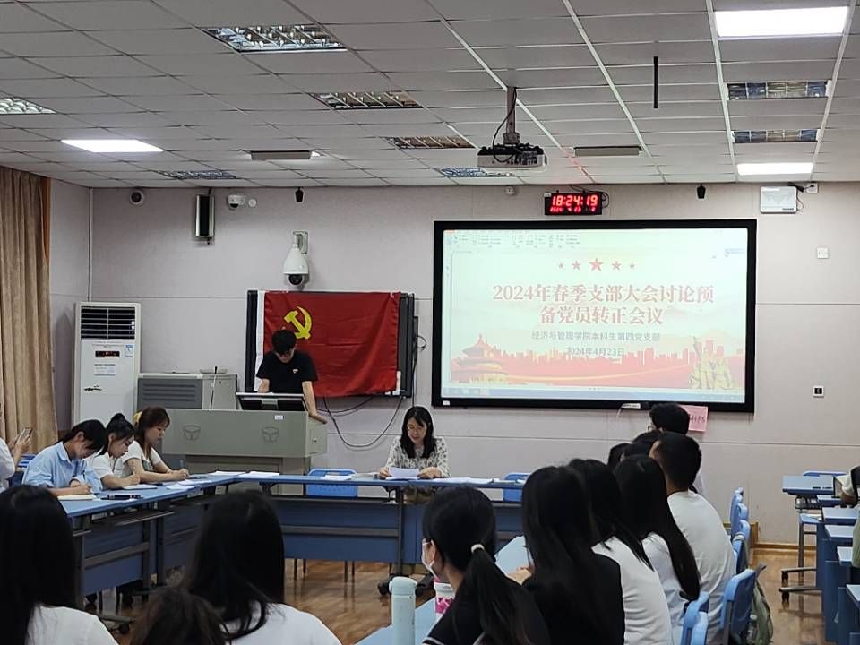 2024年4月23日下午,必威西汉姆联官网本科生第四党支部在五综511室召开预备党员转正大会。会议由支部书记勒韦倩主持,全体支部党员参加大会,会议主要讨论刘敏同志的转正问题的相关事宜。