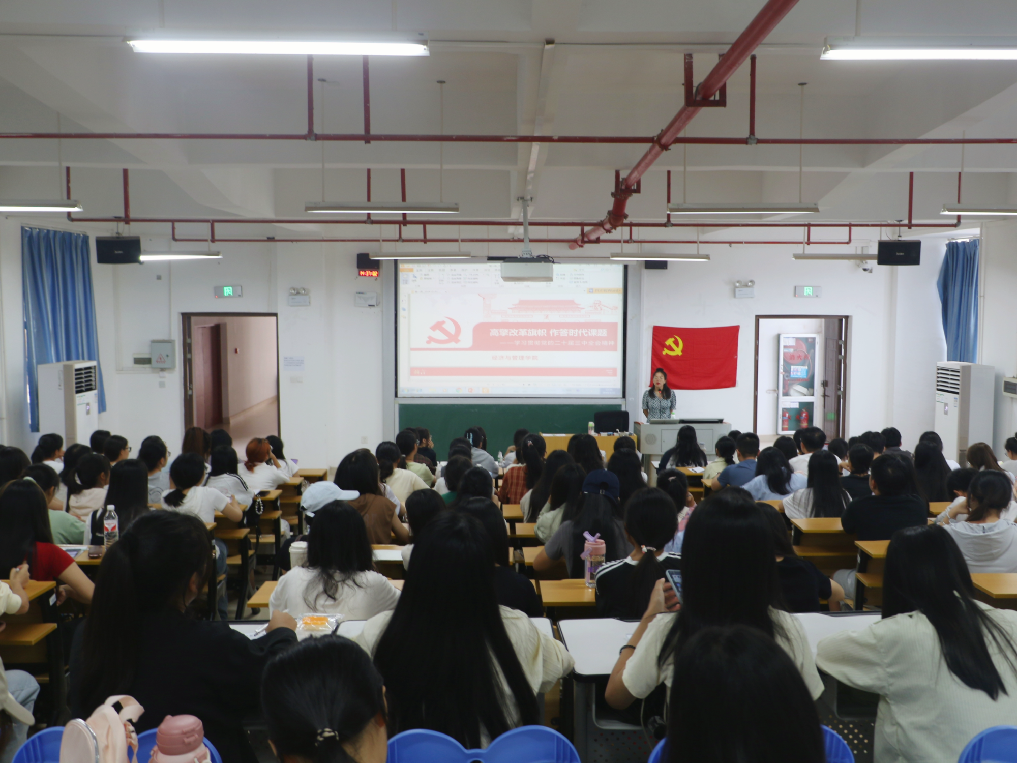 在第一讲中,刘家瑶围绕主题“高擎改革旗帜,作答时代课题”进行讲述。刘家瑶老师以党的二十届三中全会为切入口,通过提问的方式,带着学生走进课题。深度讲述全面深化改革、推进中国式现代化的重要意义和总体要求,强调经济重中之重的地位,阐述党领导改革和加强党的建设与党的制度改革,深化课题意义。