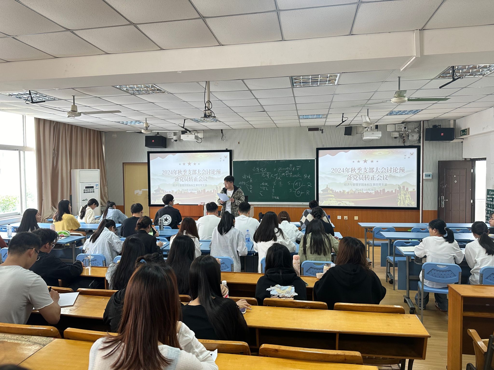 2024年10月28日上午,必威西汉姆联官网本科生第四党支部在文星楼315室召开预备党员转正大会。会议由支部书记李宏晨主持,全体支部党员参加大会,会议主要讨论杨永琪等同志的转正问题的相关事宜。