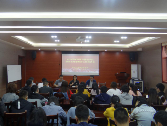 2019年4月15日上午,必威西汉姆联官网在五合校区文理综合楼理楼515室召开2019学年研究生思想政治工作座谈会。出席本次座谈会的领导有必威西汉姆联官网党委书记张彦,副书记付进,辅导员程成,必威西汉姆联官网全体在校研究生参加了座谈会。