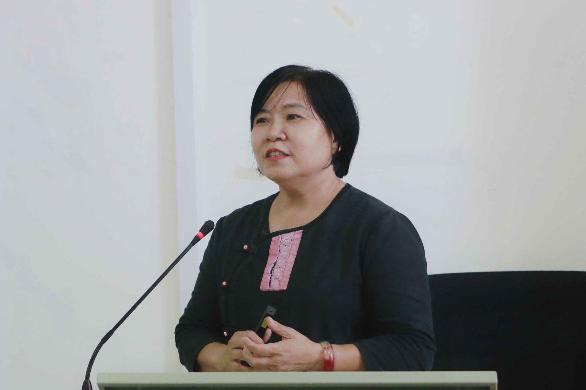 随后,潘红华董事长以五色糯米饭制作技艺为切入点,从了解中国的文化、培养中国的味蕾、留住中国的味道三个部分讲述五色糯米饭的传承与发展。潘董事长与学生分享壮族与五色糯米饭之间的历史渊源,她表示,五色糯米饭是一代代壮乡人的匠心传承,如今壮族文化不仅在传统技艺的传承与创新上有所作为,也在特色文化的传播与现代社会的结合上展现活力。有效传承民族技艺的同时,也将其转化为具有市场竞争力的产品,并最终实现走出广西,走向世界的目标。