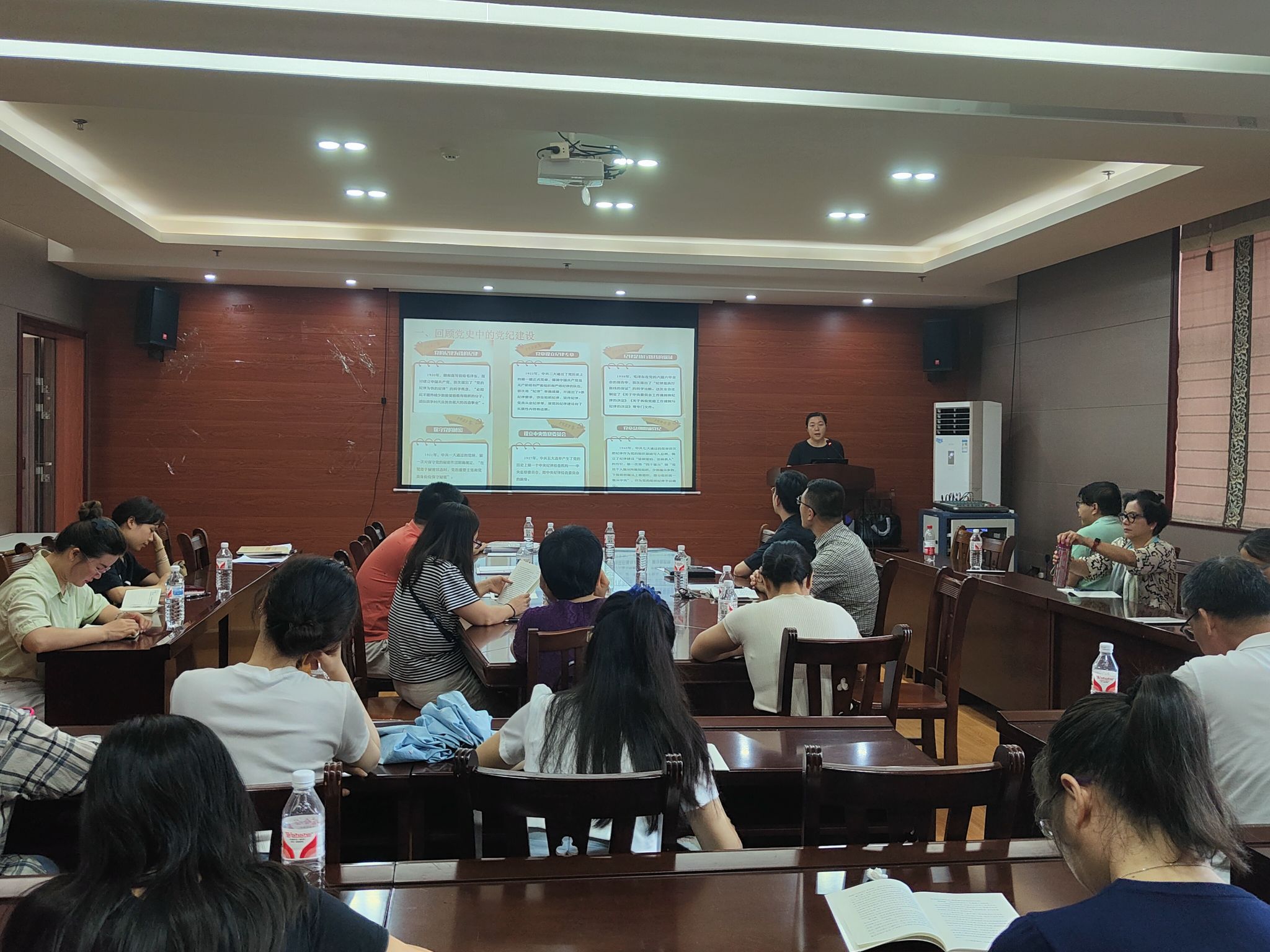 何玲玲副院长以“党史上的纪律教育”为题,通过回顾党史中的纪律建设,辅以史上党内严明纪律教育的典型案例展开讲述。她强调,党员教师通过了解党史上的纪律要求,增强自身的纪律意识,把纪律规矩转化为政治自觉、思想自觉、行动自觉,营造风清气正的教育环境,为学生树立良好的师德师风榜样。
